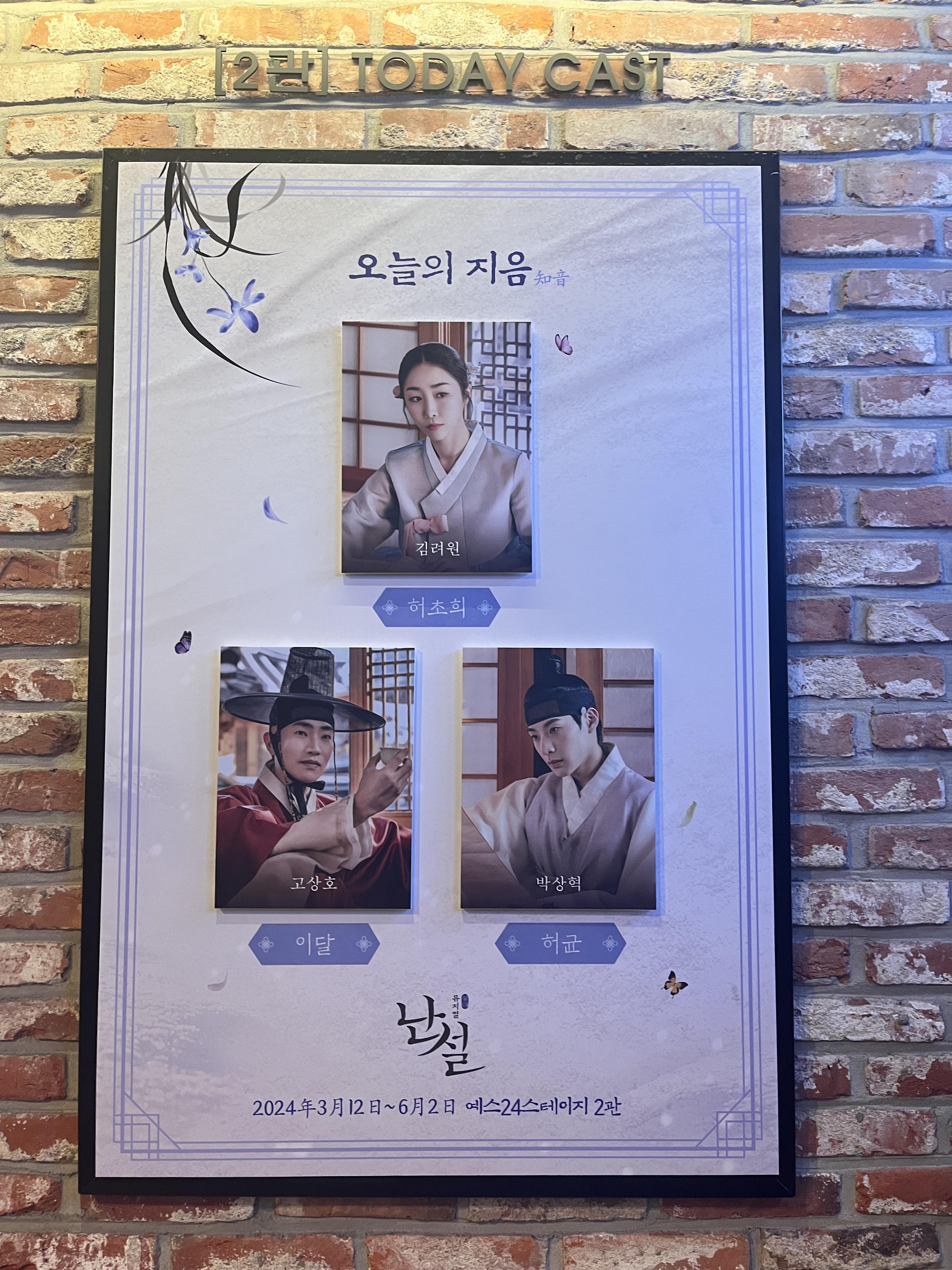 허균 역의 배우는 소리는 짱짱한데 노래 음정이 불안해서 아쉬웠습니다.